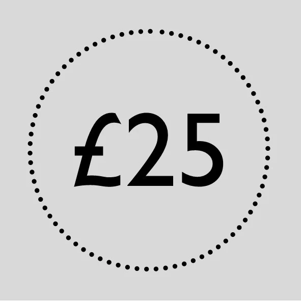 Available in denominations of £10, £25, £50 or £100, please specify.